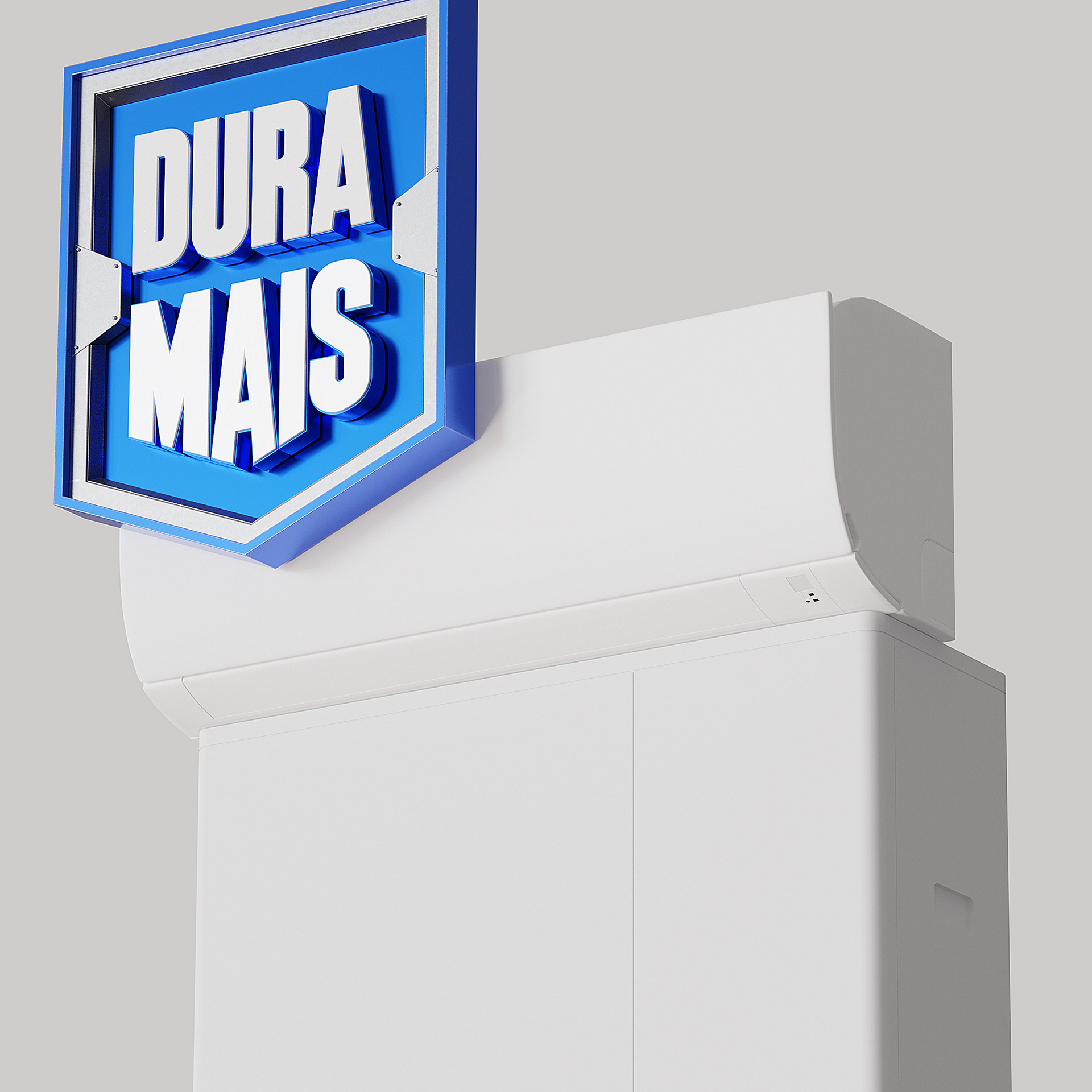 Key Visual 03, developed for the "Durability - Daikin" campaign. The work consisted first of developing the 3D seal that should express strength, robustness and resistance, characteristics that represent the durability of Daikin air conditioning equipment.